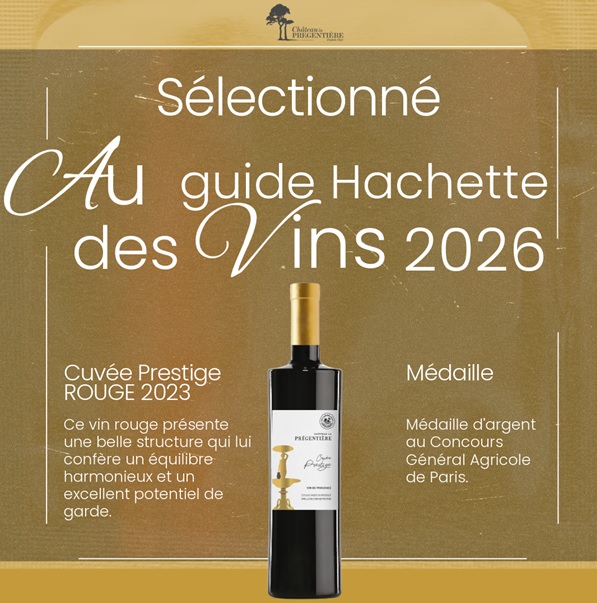 Nous sommes heureux de partager une excellente nouvelle : notre Rouge Prestige 2023 a été sélectionné dans le Guide Hachette des Vins 2026 avec 1 étoile !